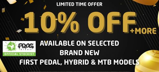 Save 10% off RRP on selected First Pedal, Hybrid & MTB models (while stock lasts).