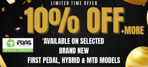 Save 10% off RRP on selected First Pedal, Hybrid & MTB models (while stock lasts).